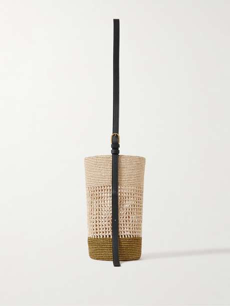 KHAITE Billie zweifarbige Beuteltasche aus Raffiabast mit Lederbesätzen