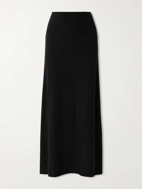 LESET vereint Komfort mit Style und entwirft schicke Kreationen wie den gerade geschnittenen „Lauren“ Maxirock, der aus weichem, flexiblem Stretch-Strick besteht und sich durch einen elastischen Bund sowie eine optisch streckende Naht an der Rückseite auszeichnet.