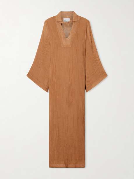 LISA MARIE FERNANDEZ Kaftan aus Gaze aus einer Leinenmischung in Knitteroptik