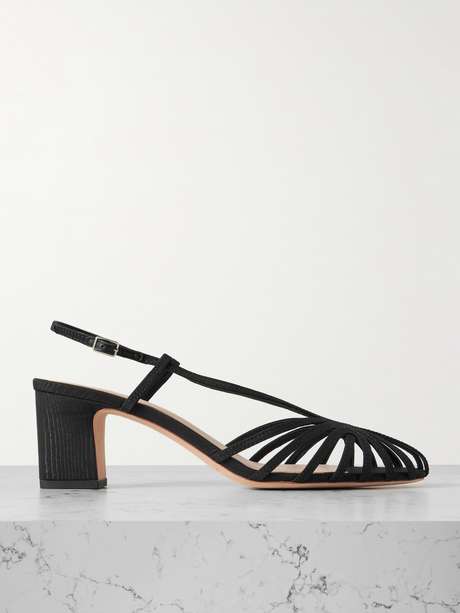 Die „Priscilla“ Sandalen von Loeffler Randall zeichnen sich durch das Design mit zarten, gitterartigen Riemen aus, die Ihre Füße elegant in Szene setzen. Sie wurden aus Moiré gefertigt und mit gepolstertem Fußbett ausgestattet. Der 65 Millimeter hohe Blockabsatz lässt Sie größer wirken. Wir empfehlen, Modelle in Midilänge dazu zu tragen.