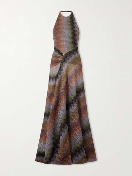 MISSONI Neckholder-Maxikleid aus Metallic-Häkelstrick