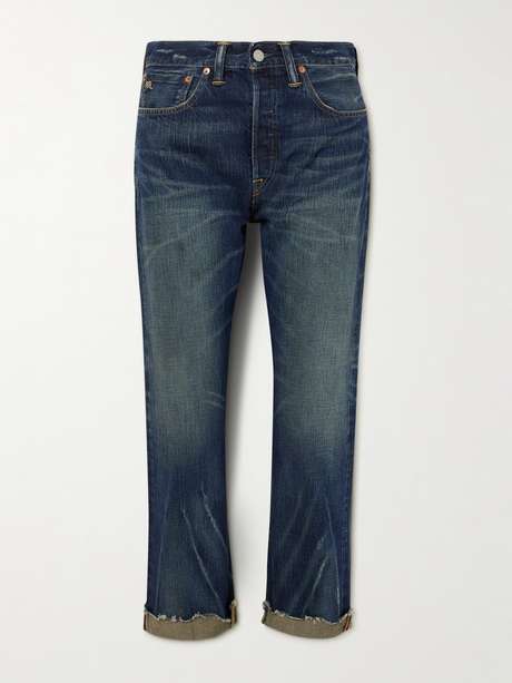 Diese Jeans mit geradem Bein von RRL erinnert an legere Herrenmodelle. Sie besteht aus mittelschwerem japanischem Denim und hat Umschläge mit Fransen. Die dunkle „Danni“-Waschung passt dabei zu vielem, das Sie bereits in der Garderobe haben.