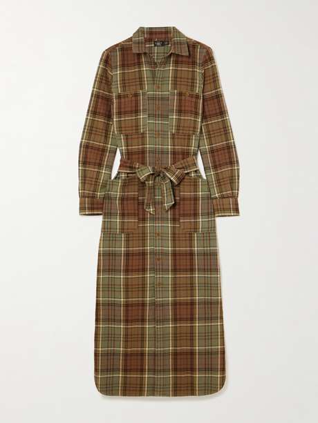 RRL Selina Maxi-Hemdblusenkleid aus kariertem Baumwollflanell mit Bindegürtel