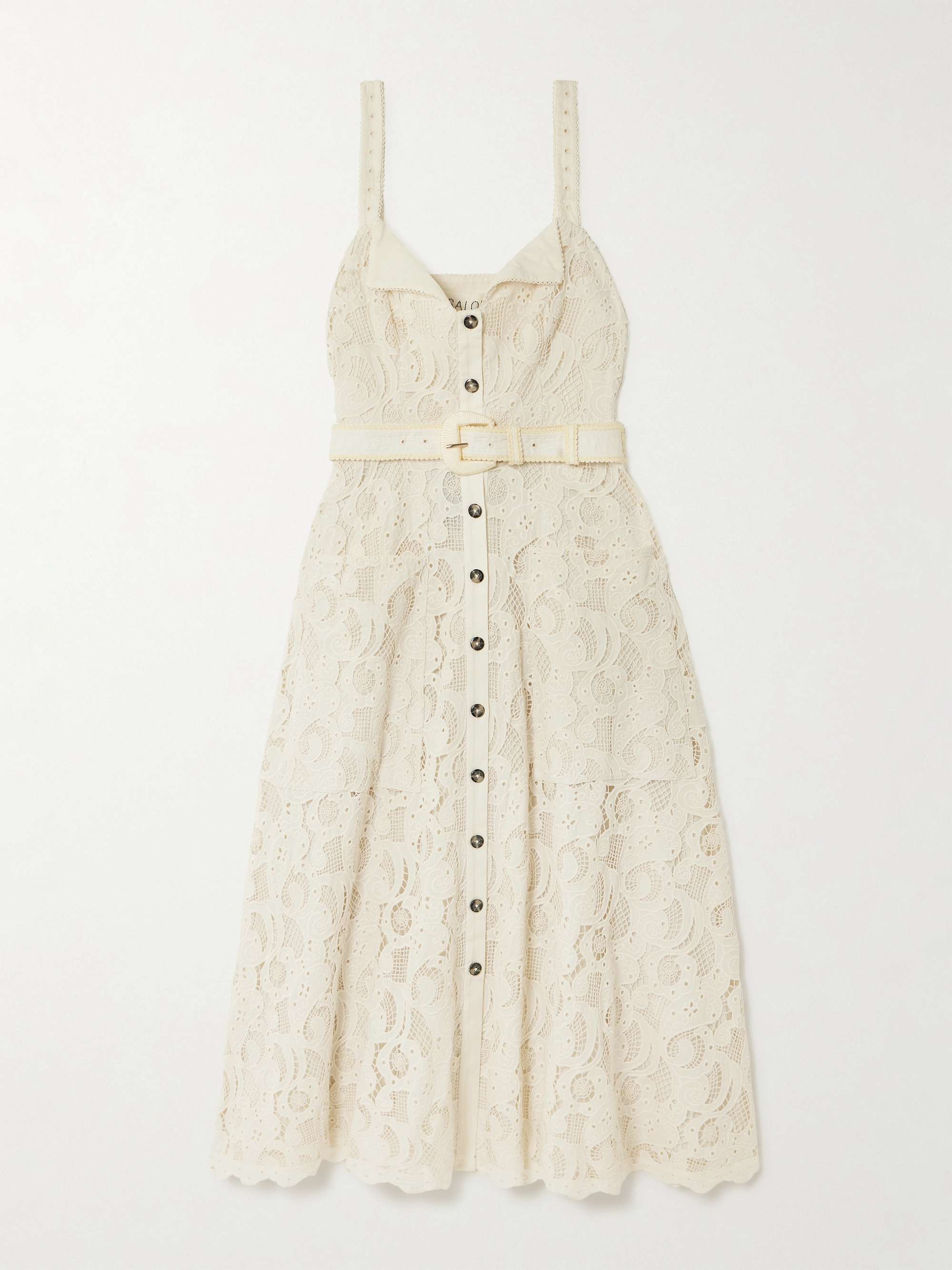 Das „Fara“ Midikleid von Saloni eignet sich genauso perfekt für ein Mittagessen im Freien wie eine Gartenparty. Das Modell besteht aus Baumwolle mit Lochstickerei in Form von Paisley-Motiven, die im markeneigenen Atelier designt wurde. Es hat einen eleganten, umgeschlagenen Ausschnitt und lässt sich mithilfe des verzierten Gürtels taillieren.