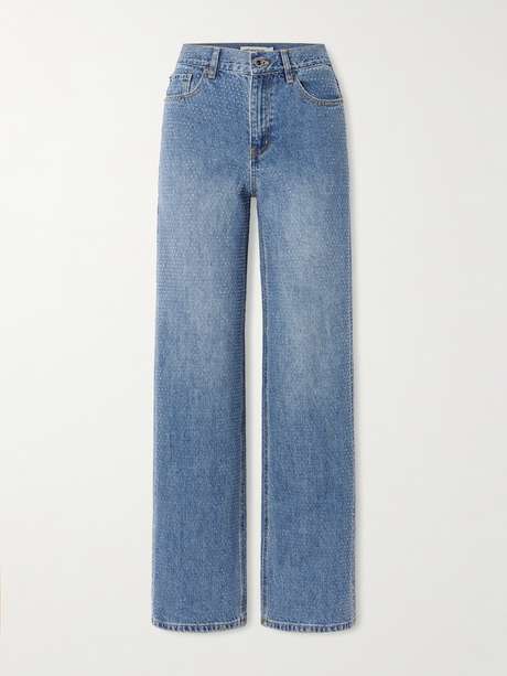 Diese Jeans von Self-Portrait ist mit unzähligen Kristallen verziert, weshalb sie im Licht eindrucksvoll schimmert. Das Modell besteht aus verblasstem hellblauem Denim und hat ein gerades Bein. Wir empfehlen ein schickes Top dazu.