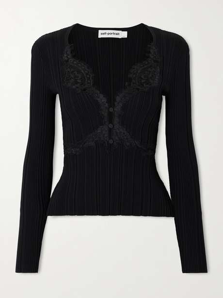 SELF-PORTRAIT Oberteil aus Rippstrick mit Spitzenbesätzen