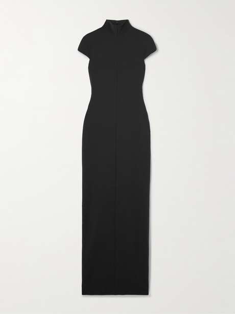 Die „Lang“ Robe von Solace London setzt ein echtes Statement. Das Modell aus Stretch-Crêpe betont ansprechend die Figur und hat einen Stehkragen, der nahtlos in die angeschnittenen Ärmel übergeht. Tragen Sie Heels sowie markante Ohrringe dazu.