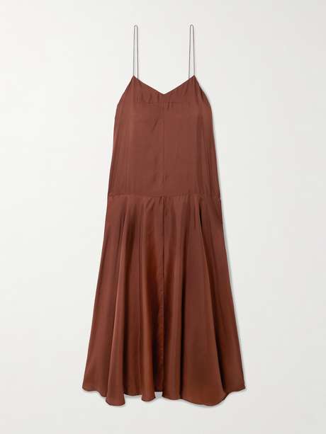 Bei ST. AGNI hat man ein Händchen für allürenfreie Eleganz. Dieses luftige Maxikleid aus Seiden-Twill verfügt hat einen V-Ausschnitt mit schmalen Trägern sowie einen ausgestellten Rock, der beim Gehen wunderschön mitschwingt.