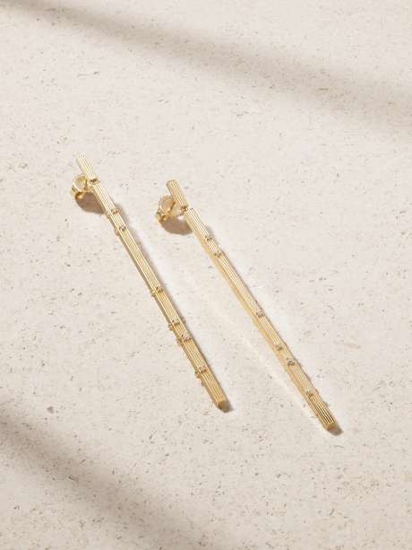 SYDNEY EVAN Fluted Bar Ohrringe aus 14 Karat Gold mit Diamanten
