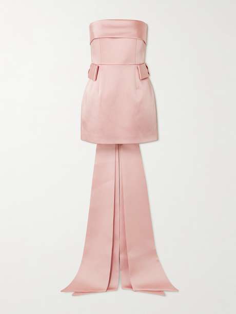 Das „Lalani“ Kleid von The New Arrivals Ilkyaz Ozel versprüht edles Vintage-Flair. Es besteht aus beigeroséfarbenem Duchesse-Satin und hat neben einem eleganten Ausschnitt mit Überschlag lange Schleppen. Zudem zieren romantisch wirkende Schleifen auf Hüfthöhe die Seiten.