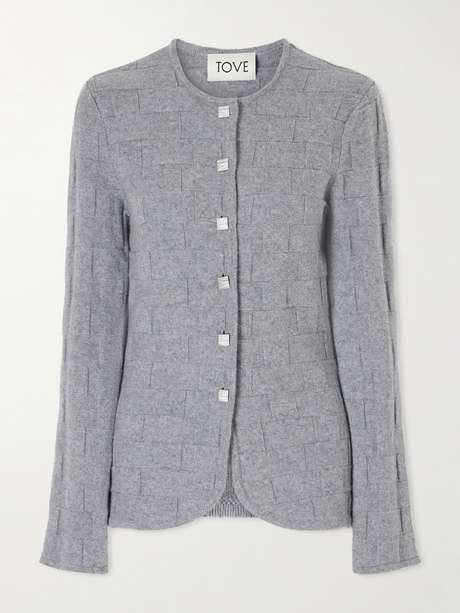 Die schicken Kleidungsstücke von TOVE bereiten viele Jahre lang Freude. Der schmale „Uma“ Cardigan aus weichem Kaschmir zeigt sich mit einem markanten Strickmuster und hat silberglänzende Knöpfe, die an Schmuckstücke erinnern.