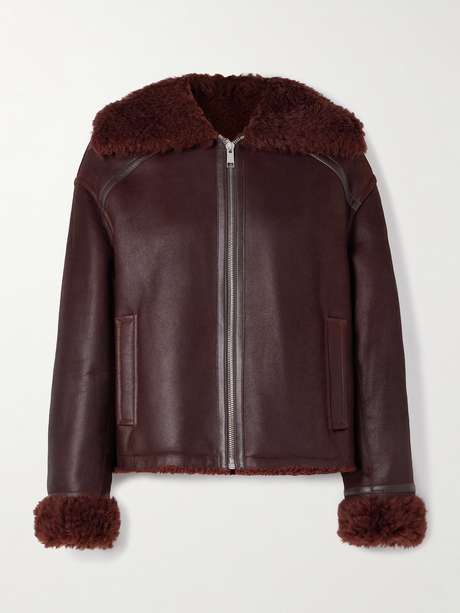 Diese Jacke von Yves Salomon ist genauso glamourös wie zeitlos. Sie wurde aus geschmeidigem Leder gefertigt und an Kragen sowie Ärmelabschlüssen mit weichem Shearling besetzt. Dank der leicht lockeren Passform können Sie auch weitere Lagen darunter tragen. Der bordeauxrote Farbton ist nicht nur eine fabelhafte Alternative zu klassischem Schwarz, sondern ebenso vielseitig.