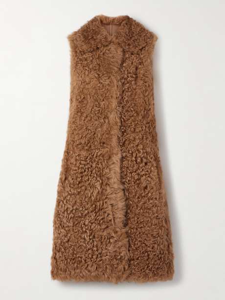 Diese lange Weste von Yves Salomon besteht aus flauschig-kuscheligem Shearling und ist perfekt für kalte Tage. Das leicht lockere Modell wurde in einem vielseitigen Hellbraunton gestaltet, der zu kräftigen wie gedeckten Farben gleichermaßen gut passt.