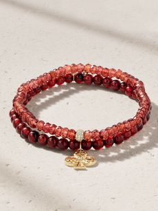 SYDNEY EVANSet of two 14-karat gold, garnet and diamond bracelets