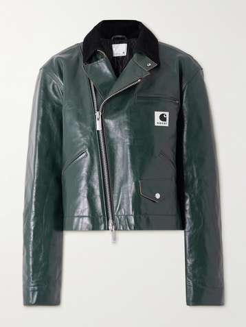 + Carhartt WIP cotton corduroy-trimmed leather biker jacket