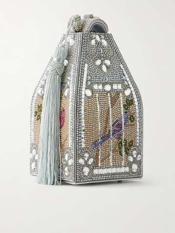 Landmark crystal-embellished satin clutch
