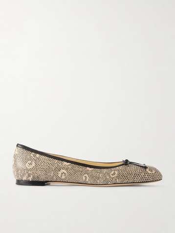 Noelle bow-detailed leather-trimmed zebra-print calf hair ballet flats
