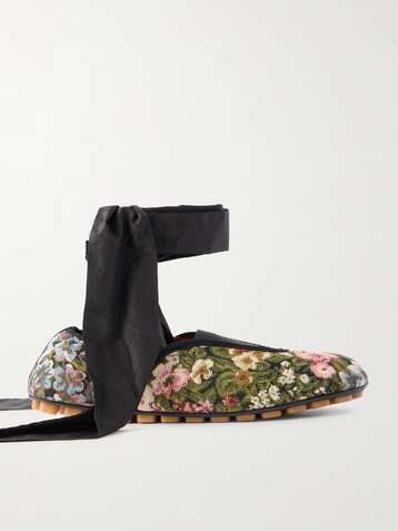 Rythmika lace-up floral-jacquard canvas ballet flats