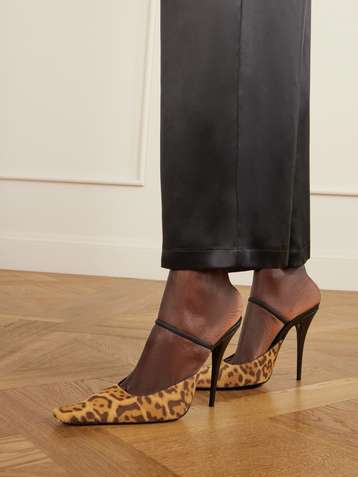 Tuileries leather-trimmed leopard-print calf hair mules