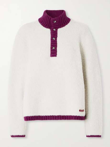 Aimé Leon Dore's 'Chalet' sweater is designed to keep you cozy après-ski. Made from fuzzy wool-blend chenille, it's traced with contrasting ribbed trims and has a funnel neckline with an adjustable half-placket. The label's logo is appliquéd at the hem.