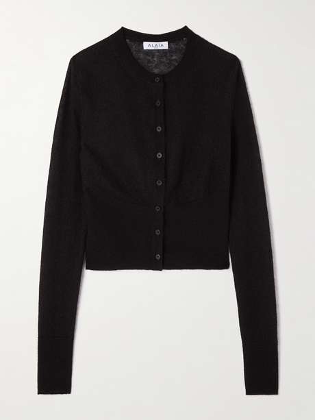 Alaïa's cardigan is knitted with plenty of mohair and a touch of wool for a soft, fluffy handle. It has a round neckline, mother-of-pearl buttons and a slightly cropped hem. Wear yours with the matching skirt from our edit.