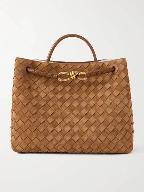 BOTTEGA VENETA Andiamo medium shearling-lined leather-trimmed intrecciato suede tote