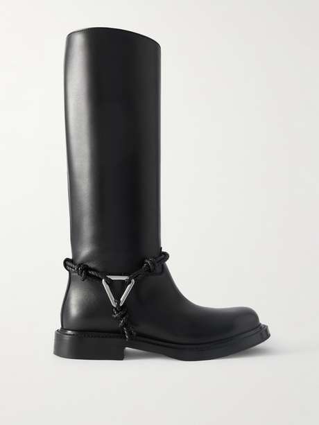 Bottega Veneta's 'James' knee boots are imbued with signature house codes, including the intrecciato-woven cord and sculptural silver-tone accents. They've been made in Italy from smooth leather and have a structured shape with rounded toes and sturdy 30mm heels.
