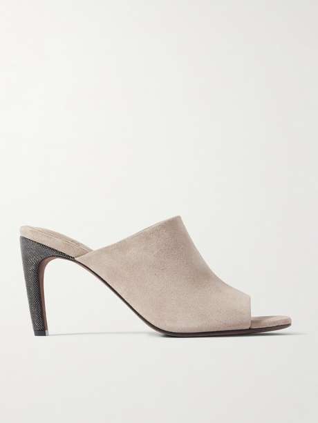 BRUNELLO CUCINELLI Bead-embellished suede mules