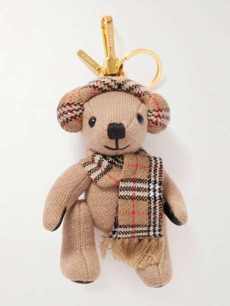 Burberry's bag charm is a house signature. Made from wool and cashmere-blend, the playful mascot hangs from a gold-tone clasp – the fastening is engraved with the brand's logo.