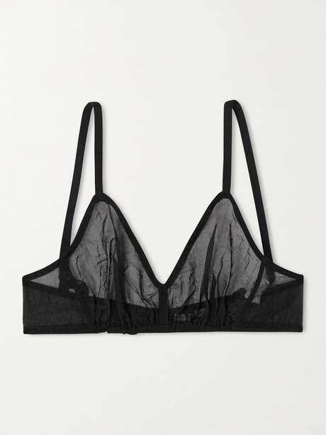 Under the fresh vision of Veronica Leoni, Calvin Klein Collection continues to redefine modern minimalism. This 'Solen' bra is cut from sheer organza with a crinkled finish and has unlined cups sewn with French darted seams.