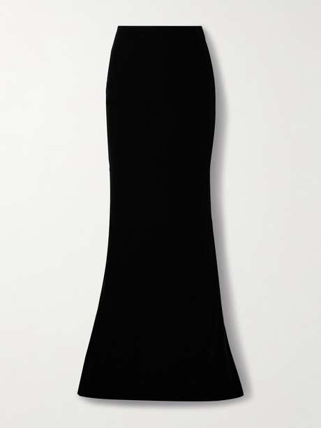 Though understated in design, Carolina Herrera's maxi skirt exudes chic luxury with its plush, velvet fabric and impeccable shape. It's designed to hug your figure before flaring out at the hem and finishing in a floor-sweeping train. Wear yours with a bandeau top to emulate the Fall '25 runway styling.