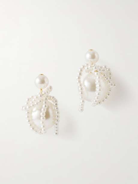 Completedworks' earrings were worn by actress Debi Mazar during the dramatized performance staged in London for the Fall '25 collection. They have a swaying, bold design with graduating sizes of faux pearls that are lightweight enough to wear all day or night.