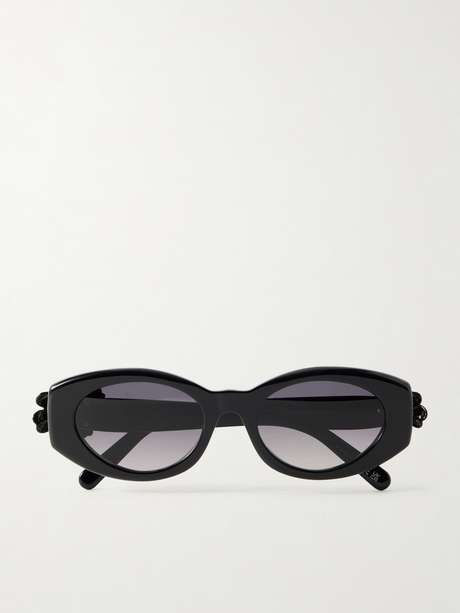 These sunglasses could become your new good luck charm. Imagined by Jonathan Anderson for Dior Eyewear, the 'Clover B1I' reinterpret symbols of fortune through lacquered clovers and a colorful ladybird at the temples, set against a sleek oval silhouette. Crafted from glossy black acetate with gray gradient lenses, the design balances a polished finish with subtly edgy detailing.