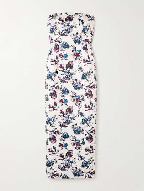 EMILIA WICKSTEAD Laelia Genzianella strapless floral-print duchesse-satin midi dress