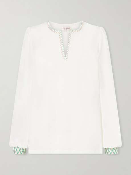 EMPORIO SIRENUSE Vera embroidered silk-crepe blouse