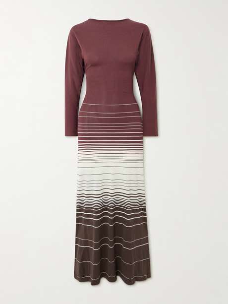 Faithfull's 'Idun' dress is knitted from cotton-blend jersey that gently skims your figure, falling to a floor-grazing hem. It has a twisted panel across the open back and stripes along the skirt. Style yours with sleek heels and minimal jewelry.