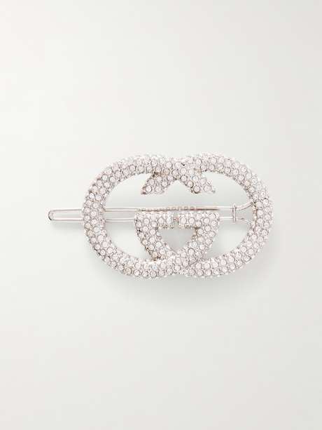 Gucci's hair clip will instantly elevate your outfit. It's made from silver-tone metal in the shape of the signature 'GG' motif and encrusted with shimmering crystals.