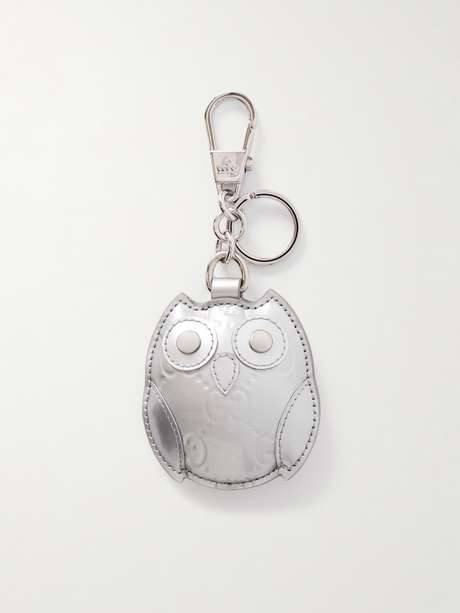 Gucci's adorable owl charm is made from silver leather debossed with the 'GG" logo. It has studs for eyes and looks great on a bag or belt.