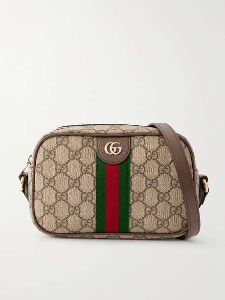 GUCCI Ophidia mini webbing and leather-trimmed printed coated-canvas shoulder bag