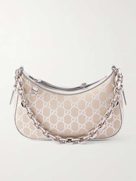GUCCI GG Emblem metallic-trimmed printed textured-leather shoulder bag