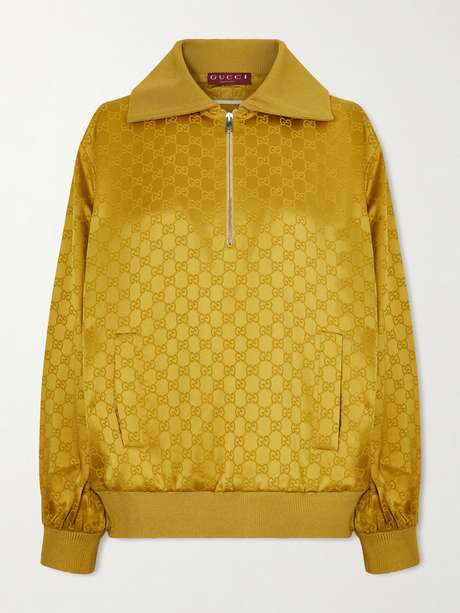 Sunshine yellow gives Gucci's track jacket a playful lift. It's made from smooth satin-jacquard, woven with the house's iconic 'GG' motif for a subtle shimmer and trimmed with ribbed-knit for a sporty feel. Be bold with your styling and team it with the coordinating pants.