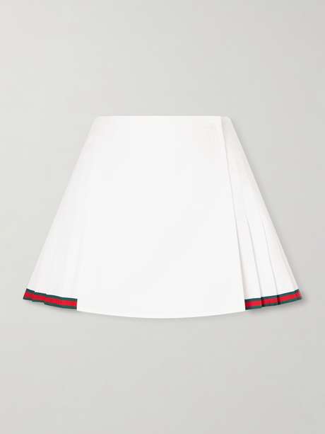 Gucci’s mini skirt is made from cotton-poplin that holds the crispness of the pleats perfectly. It's trimmed with the Italian label's signature webbing.
