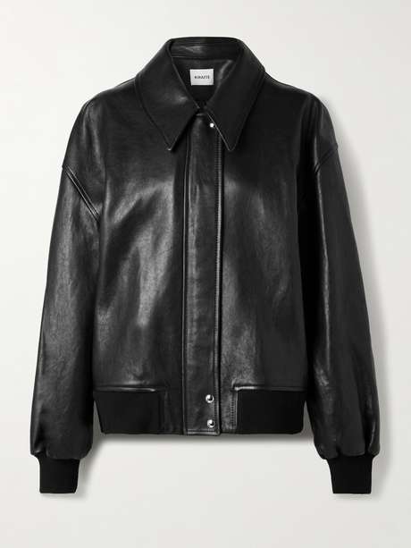 KHAITE's 'Shelman' jacket takes a chic approach to classic bomber styles. Made from supple glossy leather, it has a sharp pointed collar and ribbed trims that temper the loose fit. The partially concealed silver-tone snaps add a touch of polish while the satin-twill lining ensures smooth layering.