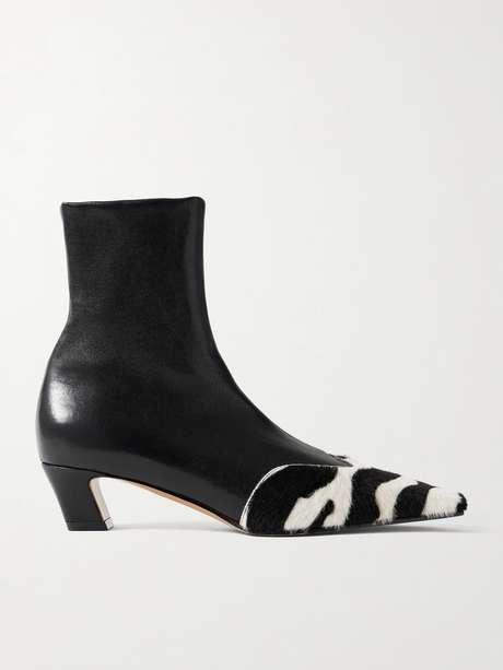 KHAITE Nevada leather and zebra-print calf hair ankle boots