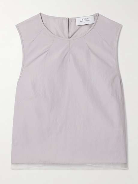 La Ligne's tank is designed to be worn with the matching skirt, which features the same sheer silk-organza trim along the hem. It's made from lightweight, crisp shell and has darts along the crew neckline.