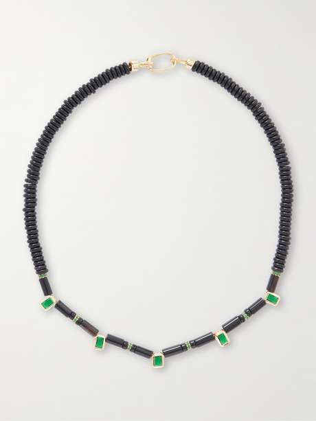 MARTHA CALVO Noir gold-tone crystal beaded necklace