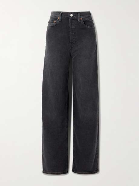 RE/DONE's 'The Marielou' jeans are stone-washed to achieve a softer handle and faded appearance. Designed to sit high on the waist, they're made from black stretch-denim and have wide legs with a slight taper.