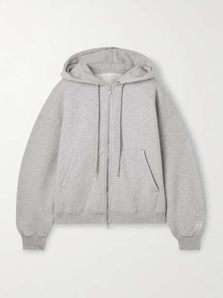 RÙADH's 'The Scott' hoodie is handmade from organic cotton-jersey and has a loose, boxy shape. It comes in a classic light-gray mélange and features subtle logo embroidery on one cuff. Adjust the two-way zip fastening to show off your collar, hem or both.