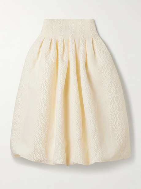 Sea's 'Fayetta' skirt has a voluminous, bubble-like shape emphasized by gentle pleats. It's made from cream cloqué and lined with voile.