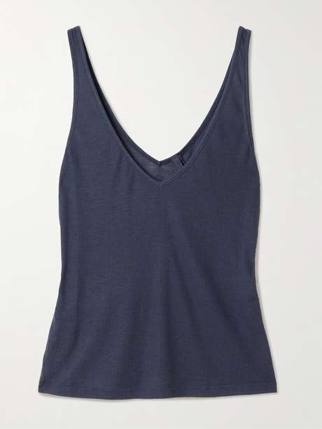 SKIMS' tank is made from sheer ribbed jersey and has a plunging V-neckline and sultry low back. Keep it casual with sweatpants or jeans.